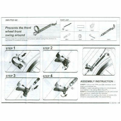 Spécialement prévu pour les vélos équipés d’une béquille double centrale, ce ressort de direction de vélo empêche la roue avant de tourner lorsque le vélo est sur la béquille. Fixé d’une part sur la fourche et d’autre part sur le cadre du vélo, il garde la roue avant dans l’axe du cadre.