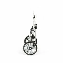 Le châssis Royal Shopper est à la fois léger et robuste avec sa construction en aluminium de haute qualité. Les roues à roulements à billes sont silencieuses et s’adaptent à tous les terrains, chemins de sentiers comme pavés. La surface de pose à la base du chariot peut être augmentée en déployant un arceau. Ainsi, vous pouvez y poser caisses, cartons et autres charges lourdes à la manière d’un diable. Sachant que le châssis supporte jusqu’à 50 kilos de charge.