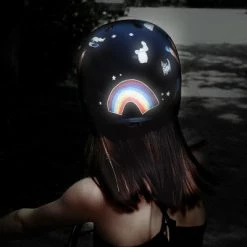 Mode d’emploi des stickers catadioptres Rainette : commencez par nettoyer la surface lisse où apposer l’autocollant, séchez-la, puis appuyez fermement le sticker pendant quelques secondes. Ne pas exposer à l’eau pour 24h. Installation à faire par un adulte. Attention : certaines marques de casques déconseillent l’utilisation d’autocollants, consultez la notice de votre casque.